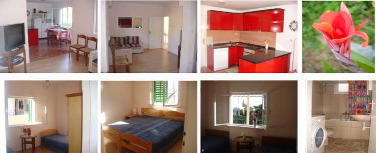 86 m2, prvi kat, kuhinja (stroj za pranje suđa) sa blagovaonom, dnevna soba, 3 spavaće sobe (2 dupla kreveta, 1 jednokrevetni ležaj), kupaona (stroj za pranje rublja) s wc-om, terasa (10 m2, Jug) pogled na more, klima, SAT-TV. |