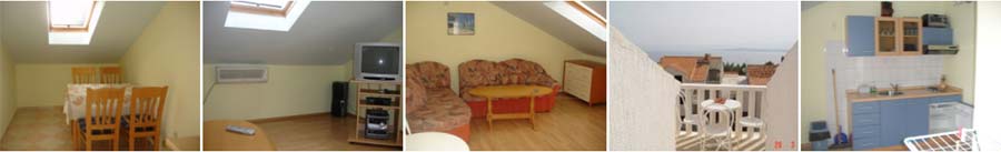 potkrovlje, ima dvije spavace sobe, boravak sa dodatnim lezajem, kuhinja, kupaona, balkon na juznoj strani sa pogledom na more, klima, tv-sat, parking. |