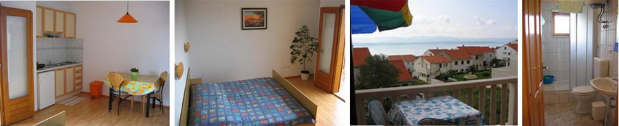 35 m2, prvi kat , studio apartman, kuhinja s blagovaonom i bračnim ležajem, balkon na jugoistoku s pogledom na more, kupaonica s tuš kadom i wc-om, klima uređaj, TV+SAT, DVD. |
